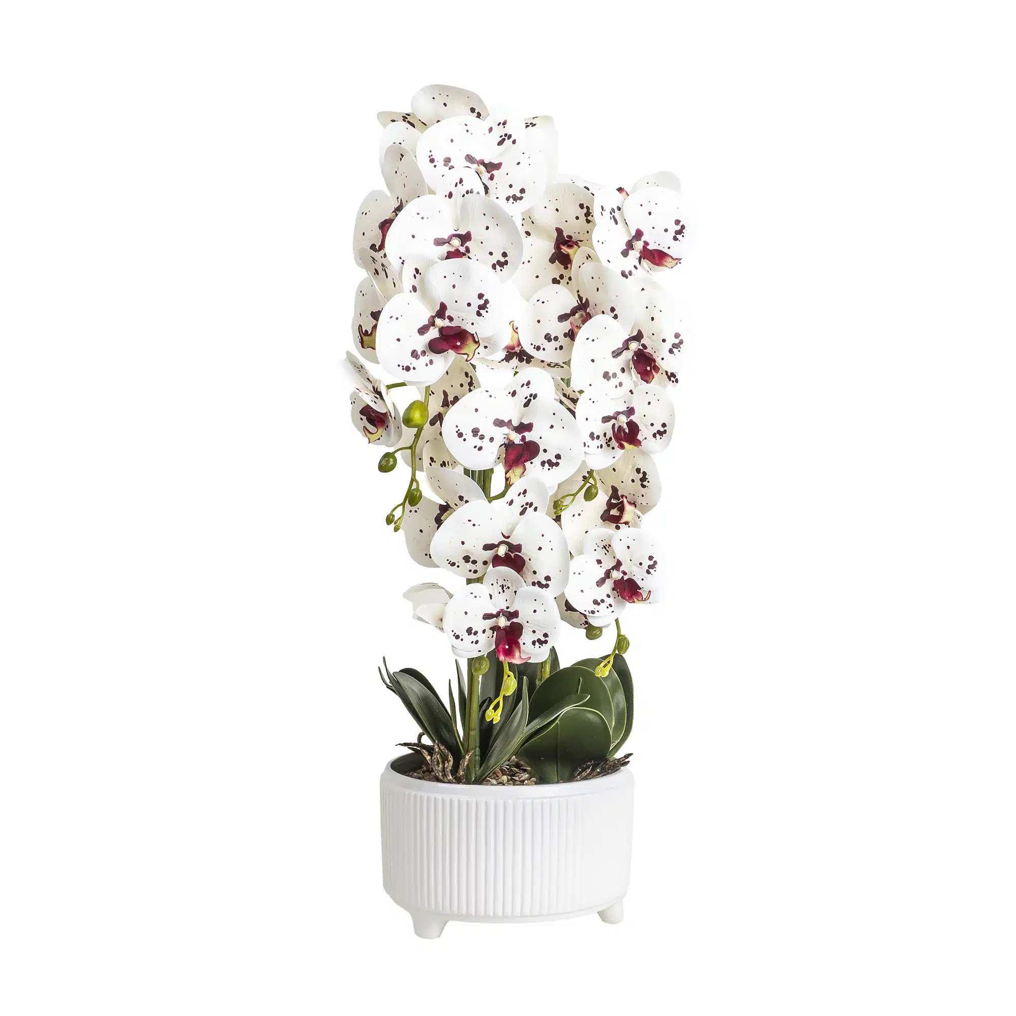 Orhidee cu aspect natural in ghiveci ceramic alb, diametru 22cm, H 70 cm / CD5147_Alb-grena
