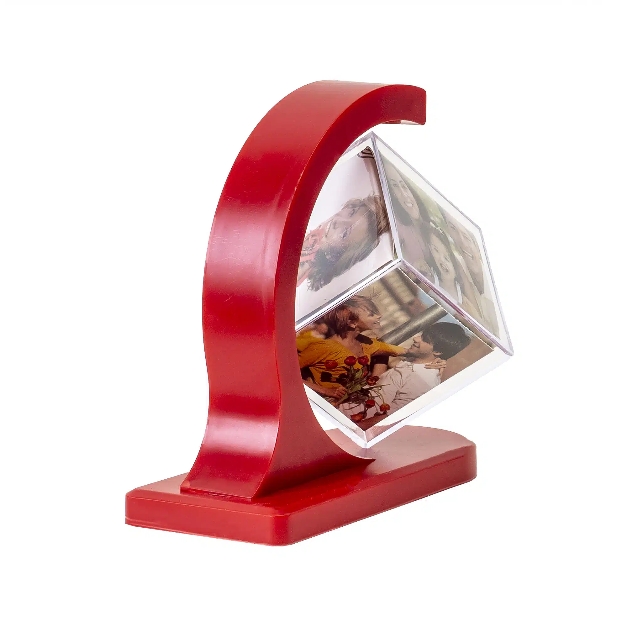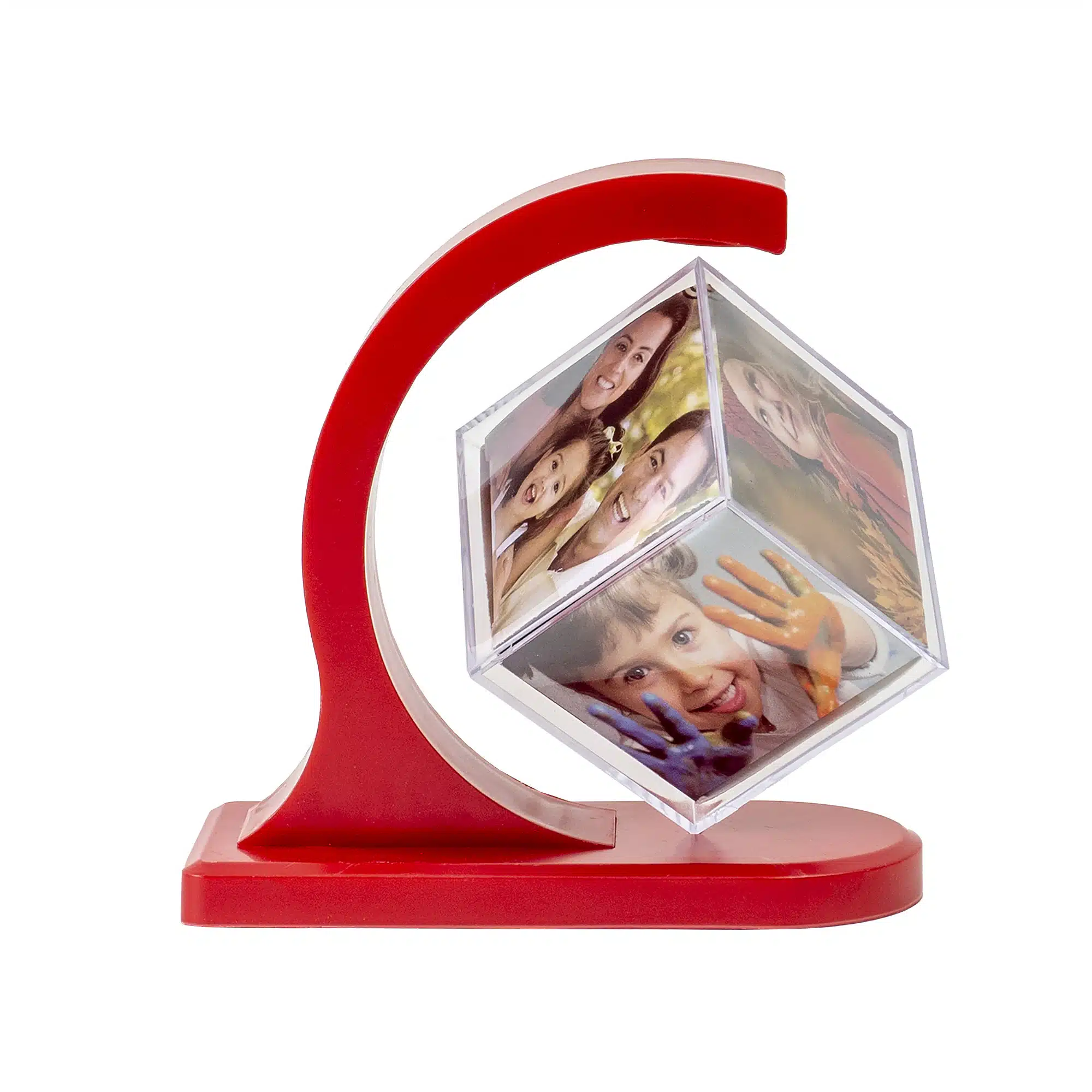 Rama foto, in forma de cub, magnetic rotativ cu 6 poze, rosu / CD3521_ROSU