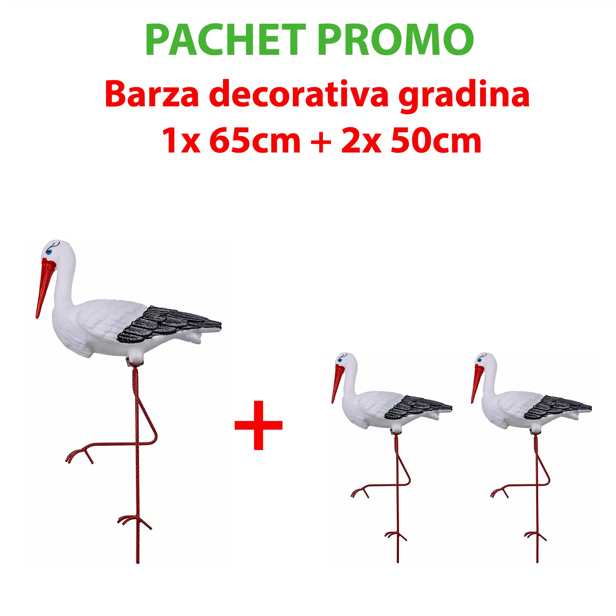 Pachet promo – Barza decorativa pentru gradina 65cm + 2x Barza decorativa pentru gradina 50cm