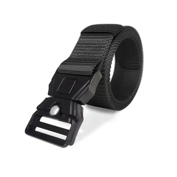 Cureaua de drumeție textilă este alegerea ideală pentru cei care caută siguranță, confort și rezistență în timpul activităților outdoor. Cu o lungime de 1.25 m și sistem practic de deblocare prin buton, oferă fixare stabilă și ajustare rapidă. Designul negru versatil o face potrivită atât pentru drumeții, cât și pentru ținute casual sau utilitare.