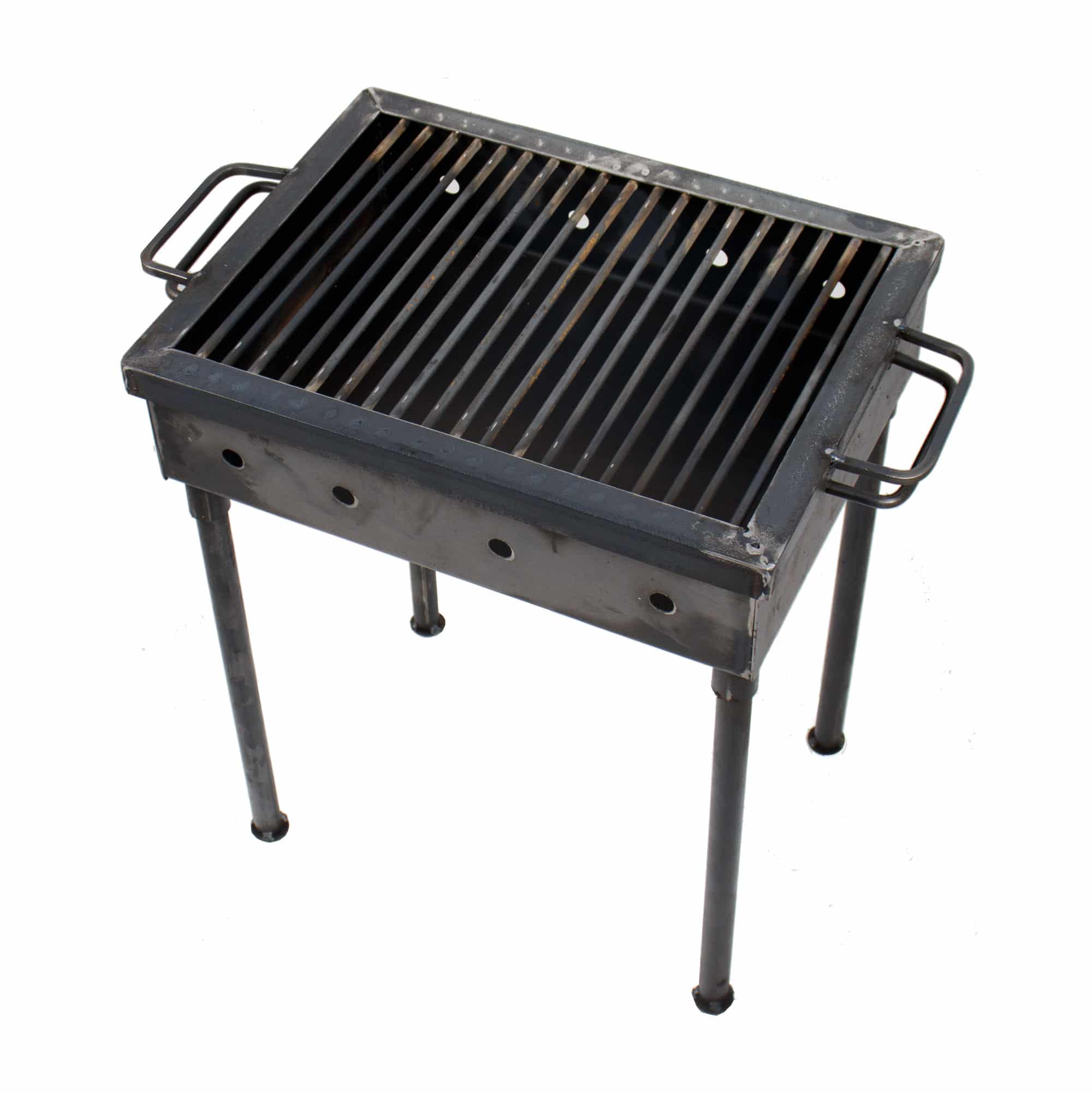 Gratar de gradina traditional din tabla cu o grosime de 2 mm ce dispune de picioare demontabile astfel incat poate fi transportat cu usurinta.Gratarul mai este prevazut pe laterale si cu gauri care ajuta sa aiba un tiraj bun pentru mentinerea jarului.