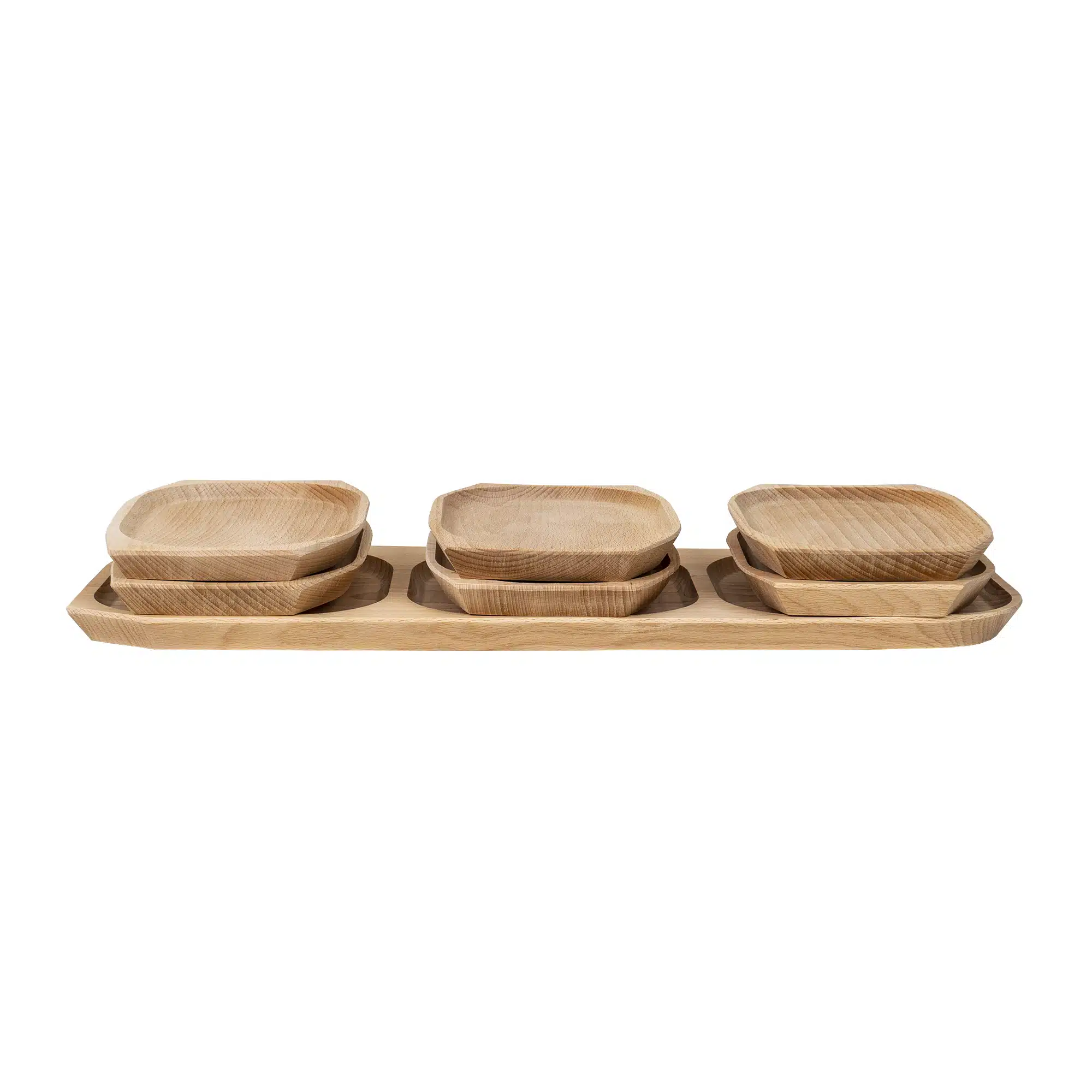 Set 7 platouri din lemn de fag, compartimentat: