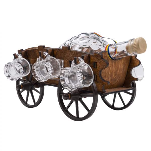 Set 6 pahare Shot cu sticla pe suport, model caruta / 4902