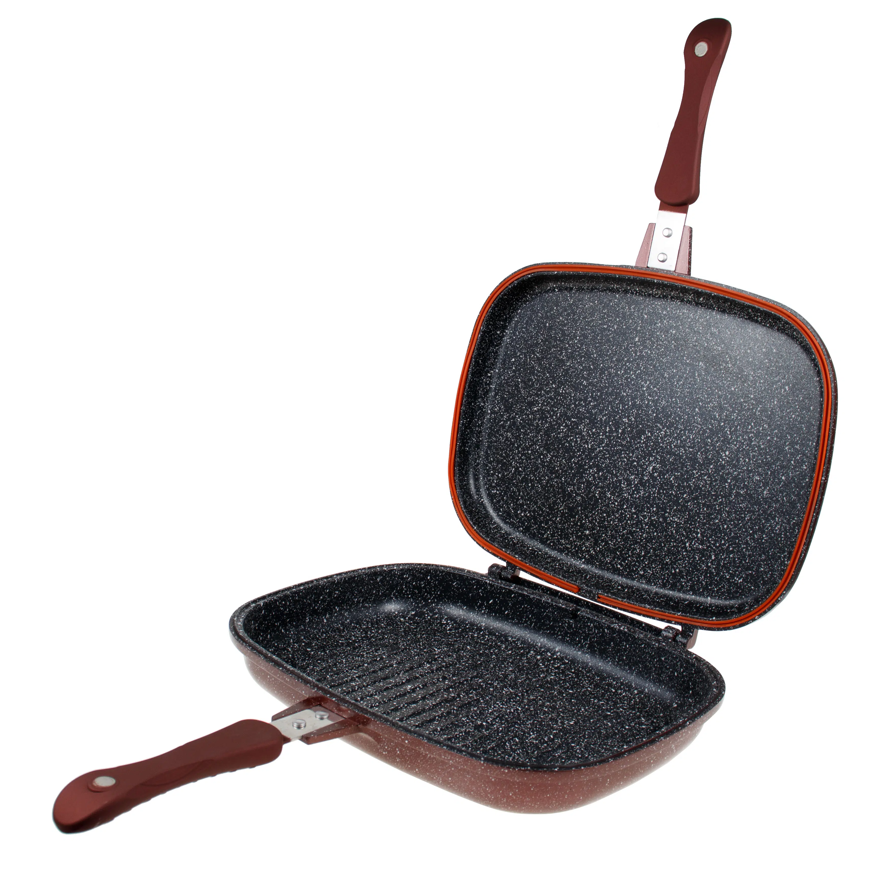 Partea cu striatii este potrivita pentru gratare in timp ce partea plata este destinata prepararii carnii de peste, pui, carne rosie.