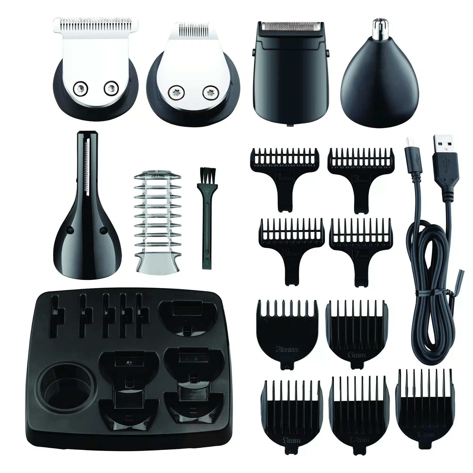 Aparat de tuns electric 16 in 1, pentru barbati reincarcabil, display digital, LED, gri.