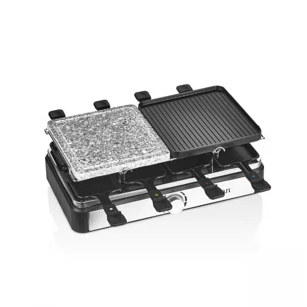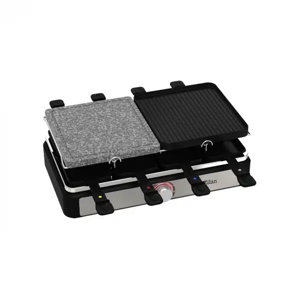 Pregatiti cele mai gustoase feluri de mancare cu acest Raclette&Grill Zilan. Acesta combinatie nu numai ca are o placa reversibila din aluminiu turnat sub presiune cu strat antiaderent, ci si o placa reversibila pentru gratar din piatra.