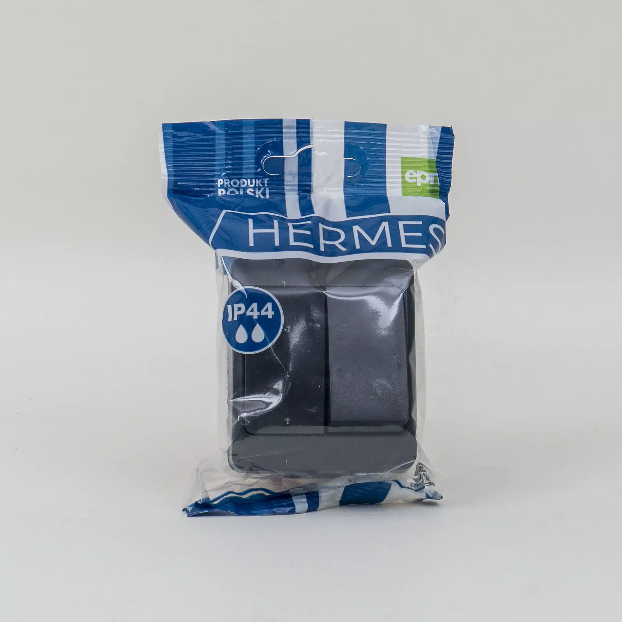 Intrerupator dublu HERMES, alb-negru 10A/250V, IP44/ ELPL-0332-07