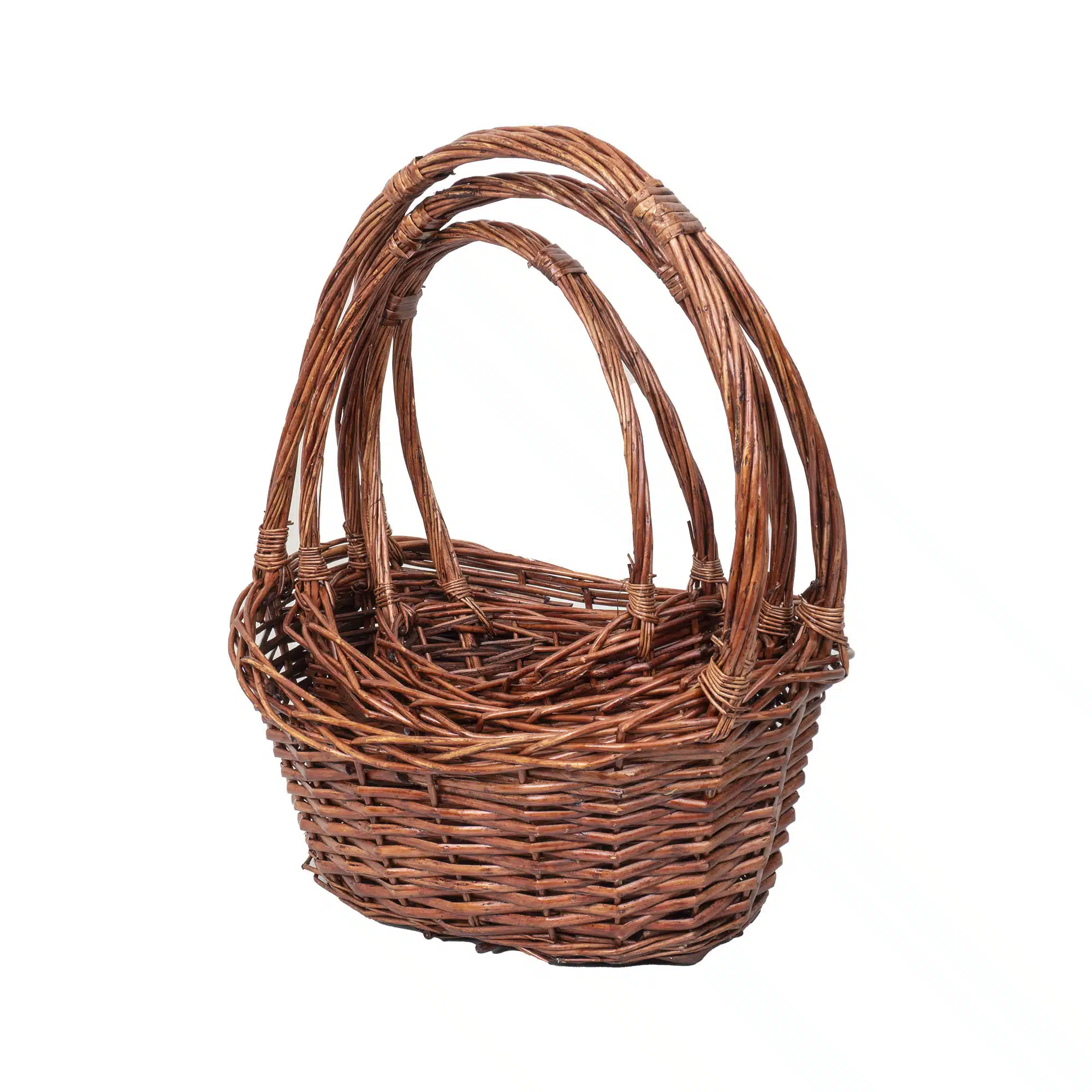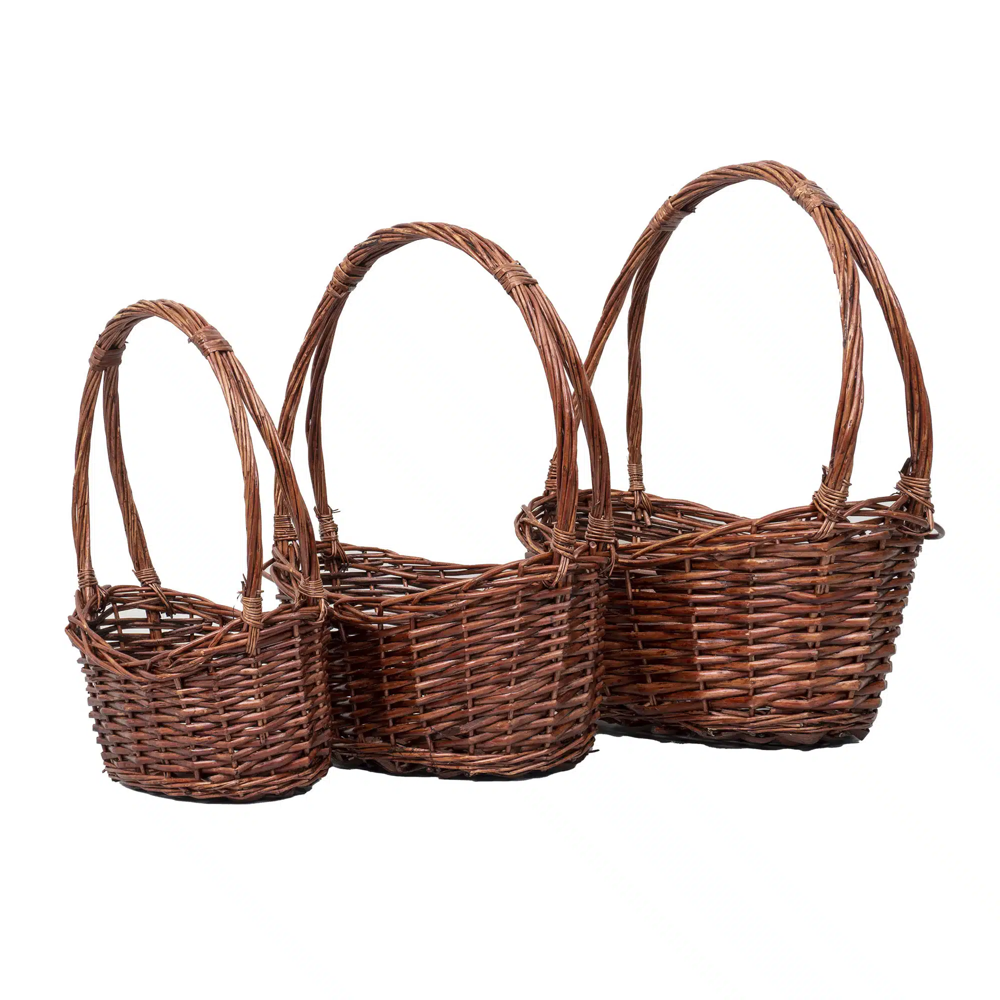 Set 3 cosuri de rachita ovale, maro lucios.
