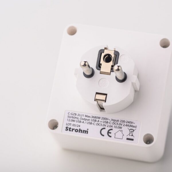 Adaptor dublu cu lumina veghe, 1xSchucko+1xEuro, USB 1xA+1xC, 16A, 250V alb Strohm / SM-A-CGZB2LU1