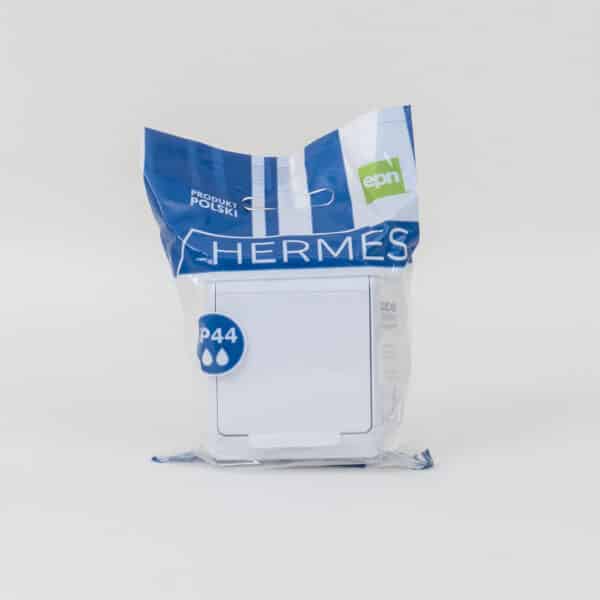 Priza simpla alba cu capac HERMES, 16A/250, IP44 / ELPL-0324-02