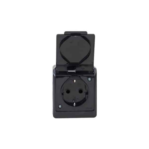 Priza simpla cu capac negru HERMES, 16A/250, IP44 / ELPL-0324-07